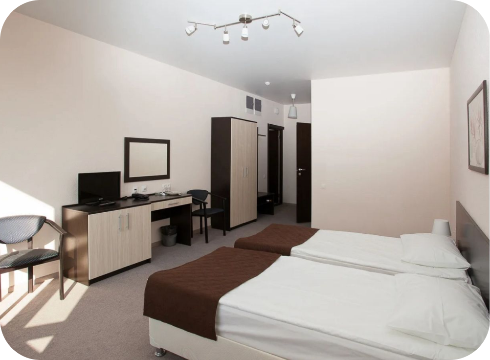 Размещение отельного формата по 2-3-4 человека по запросу ребят. Качественные санузлы, белые простыни, полотенца, ежедневная уборка в номере